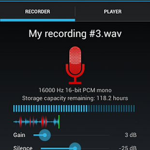 - Record to MP4 files using AAC on Gingerbread and higher, 3GP files using AMR, and WAVE files for lossless recording.